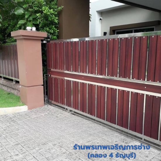 ประตูรั้วสแตนเลสผสมลายไม้